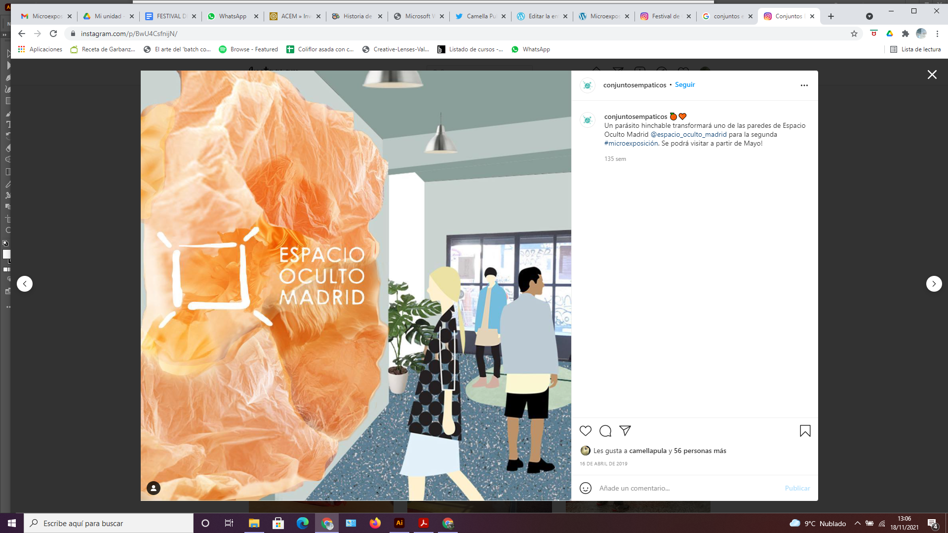 Espacio Oculto Madrid es un coworking para artistas y otra profesiones creativas que en su nacimiento funcionaba también como lugar para realizar exposiciones. El desarrollo de este espacio hizo que la lectura de una exposición se dificultara, por lo que planteamos el reto de rescatar uno de los muros para celebrar exposiciones que se pudieran leer fácilmente y no perder el discurso expositivo. Así surgió la idea de las micro exposiciones.